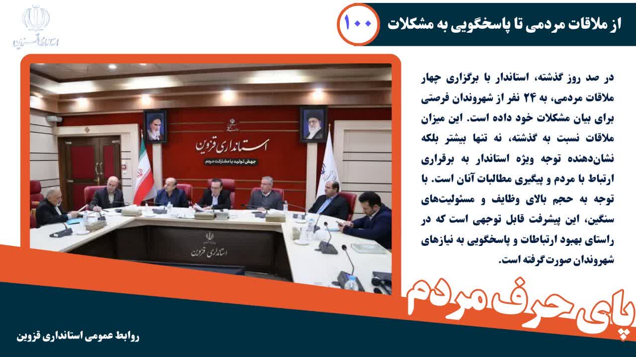 در ۱۰۰ روز گذشته، استاندار قزوین با برگزاری جلسات ملاقات مردمی، فرصت گفتوگوی بیواسطه با شهروندان را فراهم کرده است، مردم دغدغههای خود را مستقیم مطرح میکنند و پاسخ شفاف دریافت میکنند.